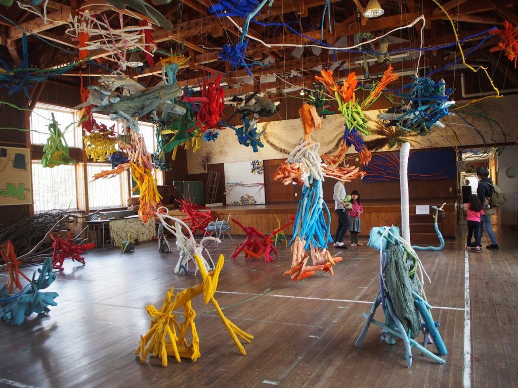 廃校を利用して作られたアートスポットの先進地。雪解け水を動力にして、木でできたオブジェが動くのが印象的。オープン当初のおよそ10年前に、作品設置のボランティアで参加したアーティストが作った新たな展示も。