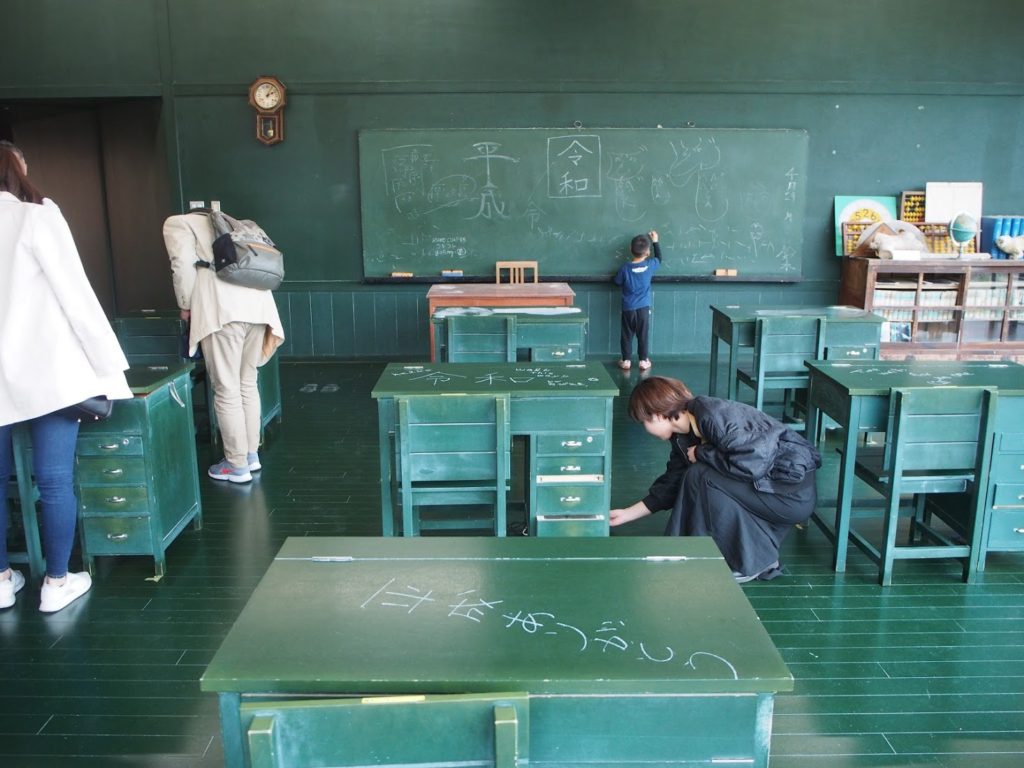 常設の黒板の部屋。平成最後だったので、落書きもそんなかんじ。