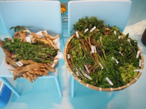 山菜を標本(ハーバリウム)にして、レシピを添えた展示。山菜の食堂もありました。
