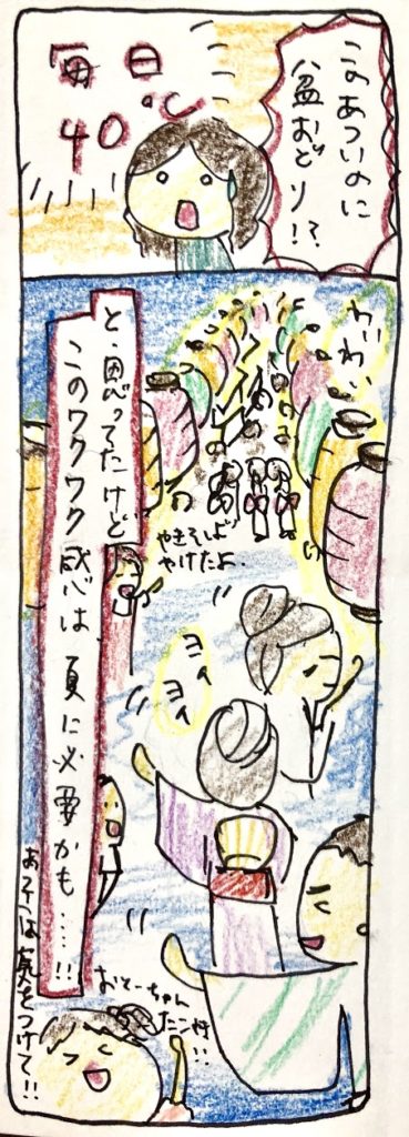 昔から日本は、共同作業、助け合いで、夏を乗り切らないとしょうがなかったからなんじゃないかなと、踊りながら思いました。