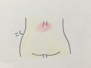 おへその裏側。背中の凹んでいるところです。