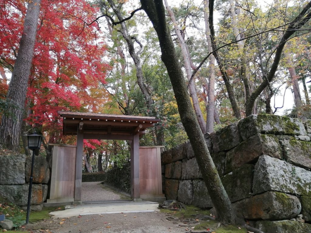 いまは石垣しか残っていませんが、大本教が管理をしていて、美しい庭園・霊場となっています。