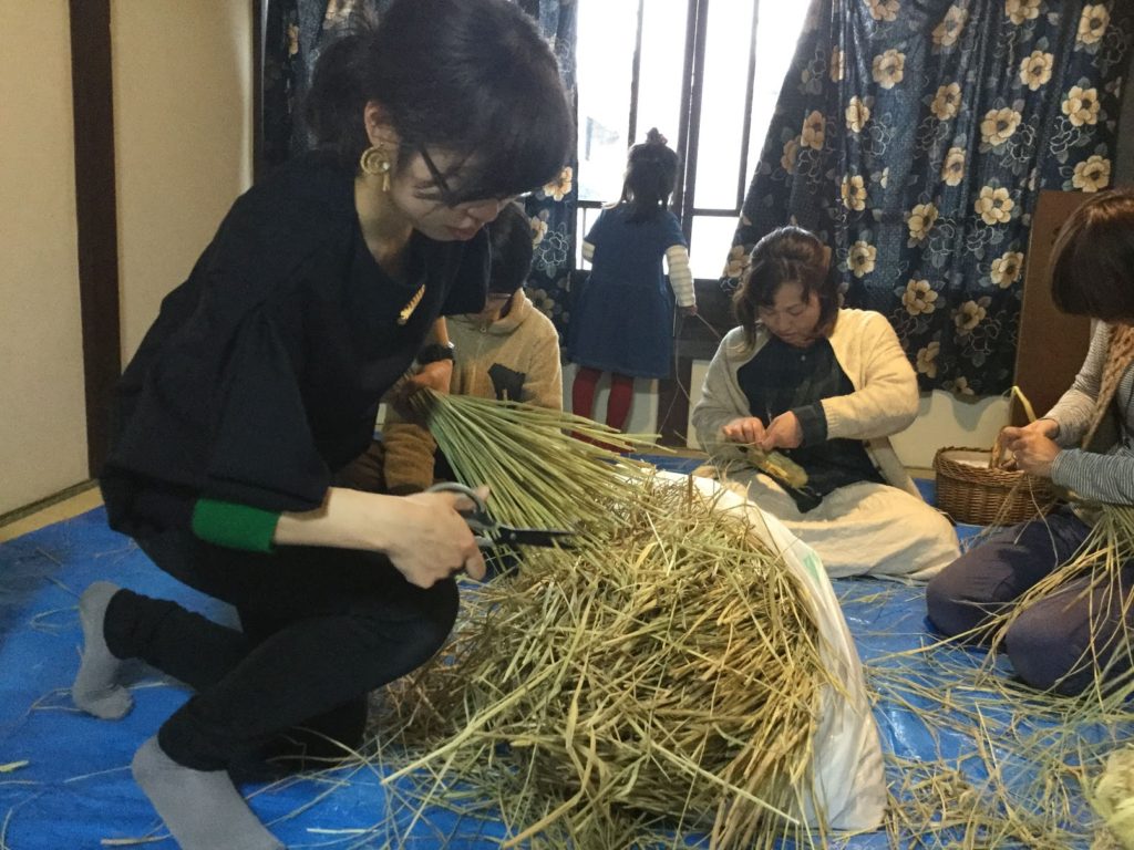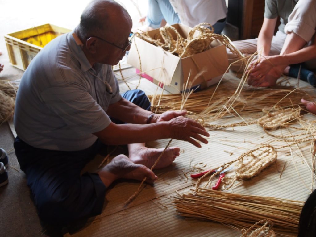 伏見稲荷の大注連縄も作っているチームの先生を呼んで、わざどころPONでは毎年しめ縄講座をしています。写真はその時の様子。