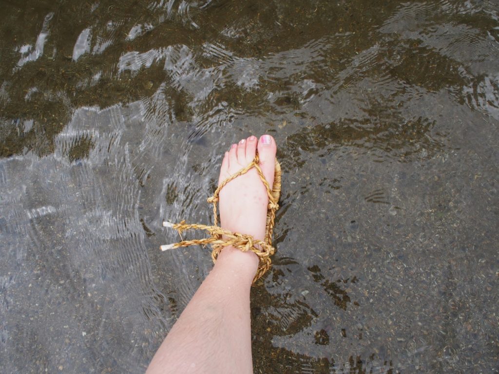 川に入ると、足がすべらなくて、いい感じです。理にかなったはきものです。
