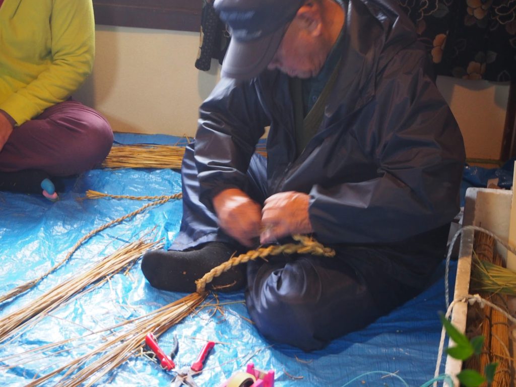 こちらも、しめ縄でお世話になっている先生が作っている様子。
